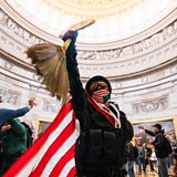 (Picture: Supporters of President Trump run through the Rotunda of the US Capitol. Credit: EPA)