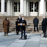 (Picture: New York Congressman Hakeem Jeffries (C) speaks at press conference to demand the impeachment of President Trump. Credit: EPA)