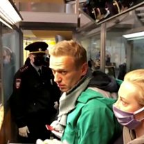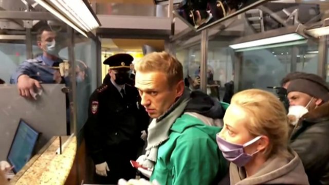 (Picture: Law enforcement officers speaking with Russian opposition leader, Alexei Navalny. Credit: REUTERS/Reuters TV)