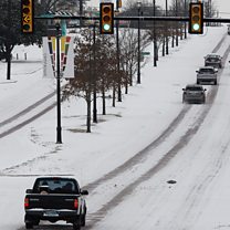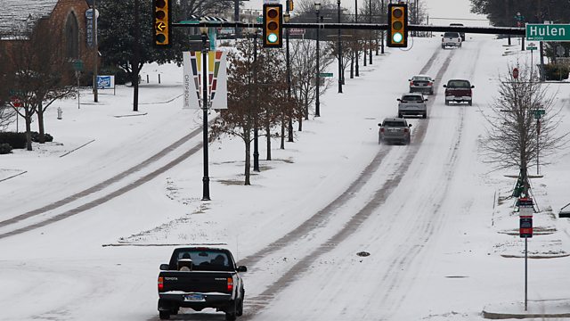 (Picture: Drivers continue to deal with treacherous conditions on streets of Fort Worth, Texas, USA. Credit: EPA)