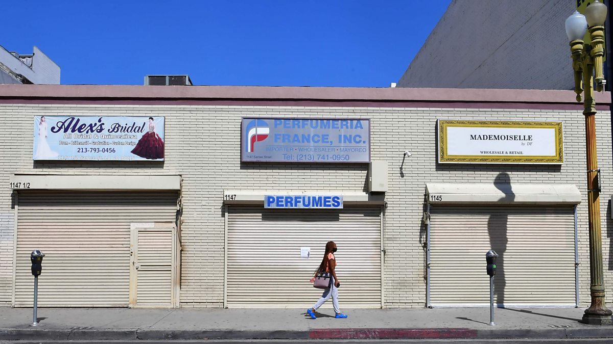 (Picture: A row of closed shops in Los Angeles. Picture credit: AFP.)