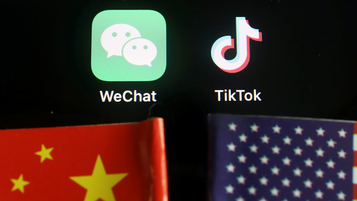 (Picture: WeChat and TikTok logos with Chinese and US flags. Picture credit: Reuters.)