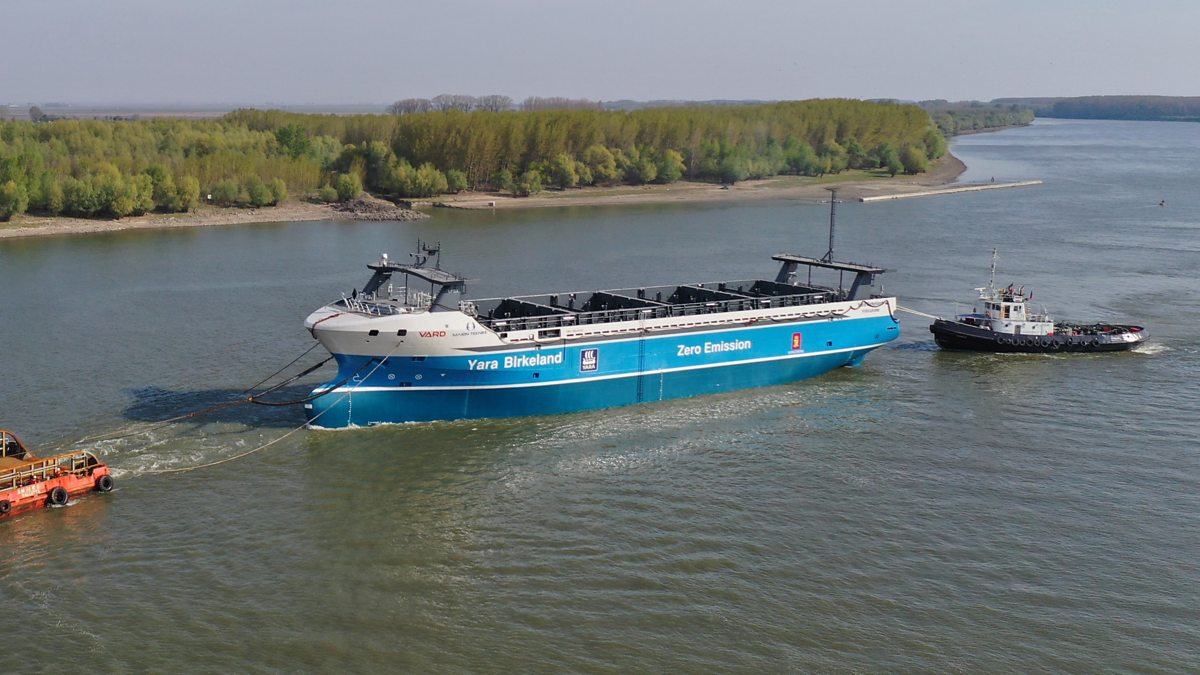 (Picture: Prototype autonomous ship Yara Birkeland being towed. Picture credit: Yara.)