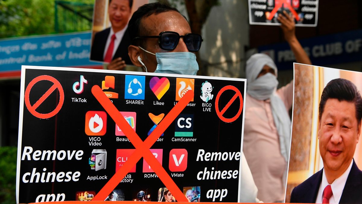 (Picture: A protest in India against Chinese phone apps. Picture credit: Getty Images.)