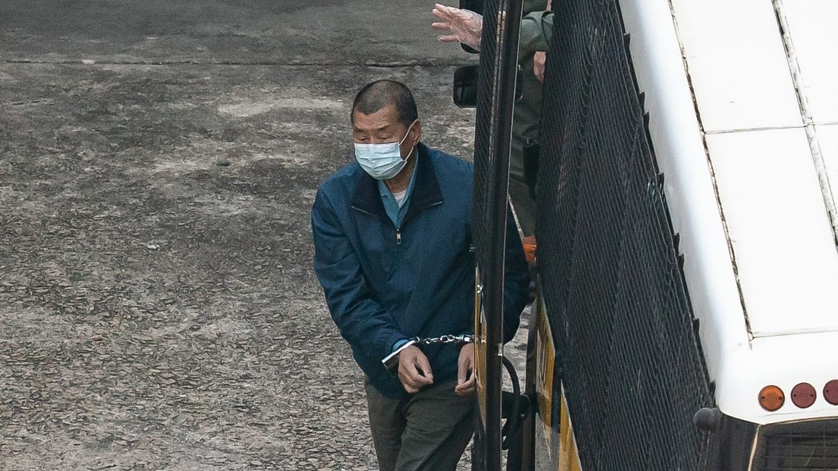 (Picture: Jimmy Lai in handcuffs. Picture credit: Getty Images.)