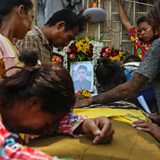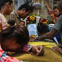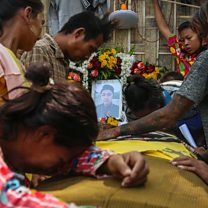 (Photo: Relatives and friends react during the funeral procession of Ko Zaw Latt,18, who was allegedly shot dead a day earlier in an anti-coup protest in Mandalay, Myanmar. Credit: EPA/STRINGER)