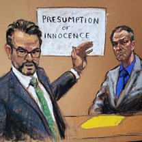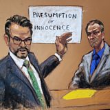 (Photo: Former Minneapolis police officer Derek Chauvin listens as defence attorney Eric Nelson makes closing arguments during Chauvin"s trial for second-degree murder, third-degree murder and second-degree manslaughter in the death of George Floyd in Minneapolis, Minnesota in this courtroom sketch; Credit: REUTERS/Jane Rosenberg)