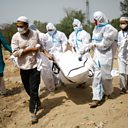 Photo: Relatives carry the body of a man who died from Covid-19, during his funeral at a graveyard in New Delhi. Credit: REUTERS/Adnan Abidi