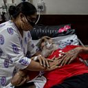 (Picture: a man suffering from the coronavirus disease (COVID-19) is comforted by his daughter as he receives treatment inside the casualty ward at a hospital in New Delhi/ Credit: REUTERS/Danish Siddiqui)