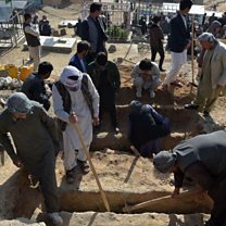 Funerals have begun in Afghanistan for more than fifty people killed in a multiple bomb attack near a school; many of the victims were young girls.