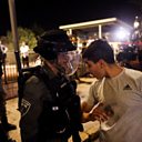 (Picture: A Palestinian man argues with an Israeli border policeman by the entrance to Jerusalem's Old City. Credit: Reuters/Ronen Zvulun)