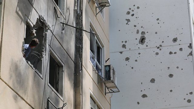 Photo: Buildings in the Israeli city of Ashkelon damaged by rocket fire from Gaza.