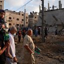 (Photo: Palestinians assess the damage in Gaza after a night of air strikes by Israeli forces. Credit: Getty Images)