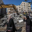(Photo: Palestinian civil defence men search for people in the rubble of a destroyed house after an Israeli airstrike in Gaza City. Credit: EPA).