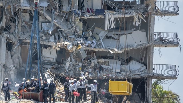(Photo: Rescue teams search the partially collapsed 12-story condominium building in Surfside, Florida, USA, 27 June 2021. Credit: EPA/Cristobal Herrera-Ulashkevich)