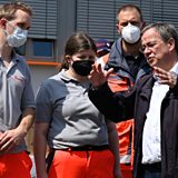 (Photo: North Rhine-Westphalia’s state premier and Christian Democratic Union (CDU) leader Armin Laschet speaks with volunteers as he visits the emergency accommodations for flood victims. CREDIT: Sebastien Bozon/Pool via REUTERS)