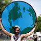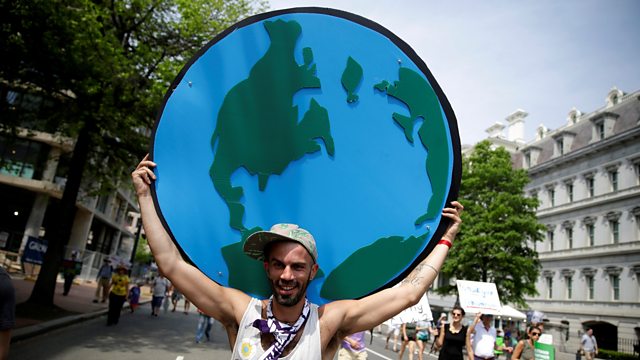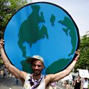 (Image: A protester carries a sign depicting the earth during the Peoples Climate March near the White House in Washington in 2017. Credit: REUTERS/Joshua Roberts)