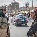 (Photo: Members of Taliban stand in a checkpoint in Kabul, Afghanistan. Credit: EPA.)