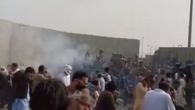 (Picture: People run from gunfire at Kabul airport, Afghanistan, 19 August, 2021 in this still image taken from a video. Credit: AAMAJ News/Reuters)
