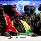 (Picture: Soldiers on TV in Guinea, Credit: Guinea TV)