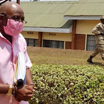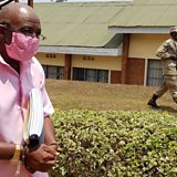 (Photo: Paul Rusesabagina escorted in handcuffs from the courtroom in Kigali. Clement Uwiringiyimana/Credit: Reuters)