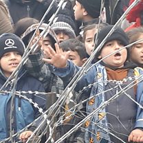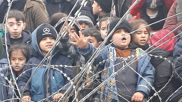 Image: Migrants' children gather near the fence on the Poland/Belarus border. Credit: REUTERS