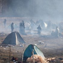 (Photo: A camp near the Bruzgi-Kuznica checkpoint on the Belarusian-Polish border in the Grodno region, Belarus. Credit: Reuters/Kacper Pempel)