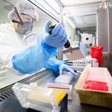 (Picture: A lab worker tests covid samples. Credit: PA)