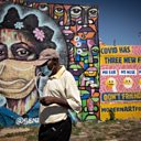 (Photo: A Soweto resident walks in front of an informative graffiti artwork educating local Soweto residents about the dangers of the coronavirus, Johannesburg, South Africa. Credit: EPA.)