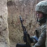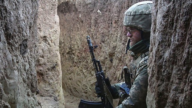 (Picture shows a Ukrainian serviceman on the front line in Donetsk. Credit EPA)
