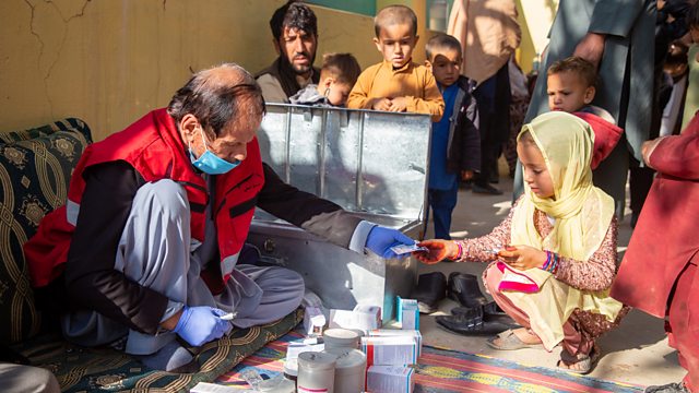 (Image: A pharmacist from one of the Afghan Red Crescent"s mobile health teams providing much-needed medicines during a community visit / Credit: Disasters Emergency Committee/PA Wire)