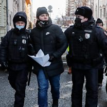 (Photo: Russian police detain a supporter of Memorial outside the country’s Supreme Court during a hearing in Moscow on December 28, 2021 – Credit: EPA / YURI KOCHETKOV)
