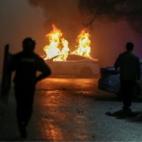 (Photo: Burning police car at a protest in Almaty Credit: Reuters/Pavel Mikheyev)