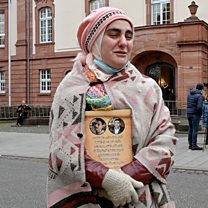 (Photo: A woman reacts as she shows a picture of her relatives, who died in Syria, after the verdict against a former Syrian secret police officer, at the Higher Regional Court in Koblenz, Germany, 13 January 2022. In the world's first trial on Syrian state torture, Anwar Raslan has been sentenced to life imprisonment for crimes against humanity, 27 counts of murder and other offences. This was announced by the Higher Regional Court in Koblenz. Credit: EPA/Sascha Steinbach)