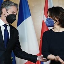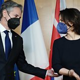 (Picture: German Federal Minister for Foreign Affairs Annalena Baerbock welcomes US Secretary of State Antony Blinken prior to their meeting at the Ministry of Foreign Affairs in Berlin, Germany, 20 January 2022. Credit: EPA/KAY NIETFELD / POOL)