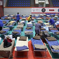 (Picture: Accommodation in Russia for people evacuated from Donetsk. Credit: Getty Images)
