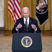 (Image: US President Joe Biden announces sanctions and delivers remarks on the US response to the situation in Ukraine at the White House in Washington, DC, USA, 22 February 2022. / Credit: EPA/ Shawn Thew)