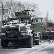 Photo: Destroyed military vehicles on a road in Kharkiv, Ukraine Credit: Reuters