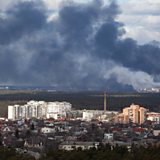 Photo: Smoke rising after shelling on the outskirts of the city is pictured from Kyiv, Ukraine Credit: Reuters