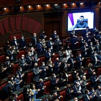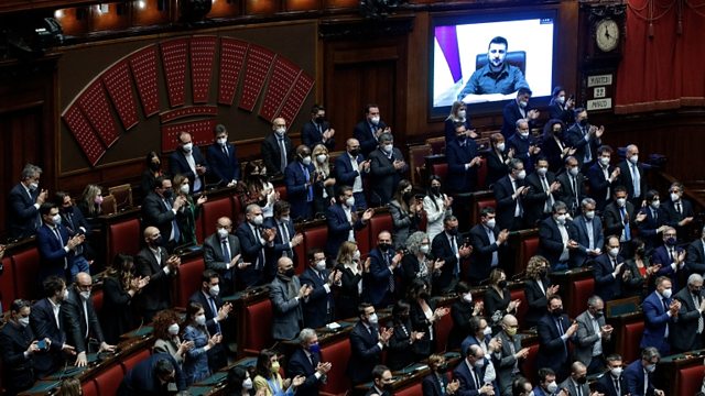 (Photo: Ukrainian President Zelensky addresses members of the Italian Parliament 22/03/2022 European Pressphoto Agency)