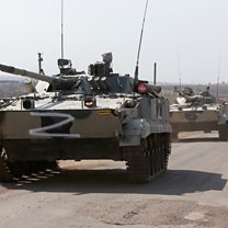 (Photo: Armoured vehicles of pro-Russian troops drive along a road near Dokuchaievsk in the Donetsk region, Ukraine March 25, 2022. CREDIT: REUTERS/Alexander Ermochenko)