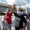 (Photo: Demonstrators takes part in a protest against Brazil"s President Jair Bolsonaro and his handling of the coronavirus disease (COVID-19) outbreak, in Brasilia, Brazil. Credit: Reuters/Ueslei Marcelino)