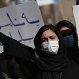 (Photo: Afghan women shout slogans during a rally to mark International Women"s Day in Herat, Afghanistan, 08 March 2021. Credit: JALIL EZAYEE/EPA)