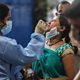 (Photo: A health worker takes a nasal swab sample of a woman to test for COVID-19 at Chhatrapati Shivaji Maharaj Terminus railway station in Mumbai, India, 16 April 2021. Credit: EPA/DIVYAKANT SOLANKI)