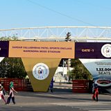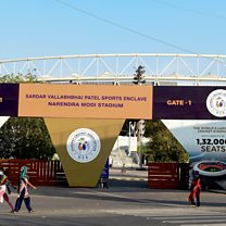 (Photo: The main entrance of the Narendra Modi Stadium, following IPL's decision to suspend the tournament due to surge in coronavirus case. Credit: Sam Panthaky/AFP/Getty Images)