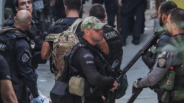 (Photo: Members of the Police carry out a police operation against a gang of drug traffickers, in the Jacarezinho favela of Rio de Janeiro, Brazil, 06 May 2021. At least 25 people died, including a police officer. Credit: EPA/Andre Coelho)