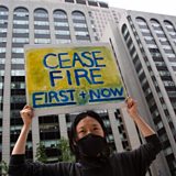 (Photo: A protester holds up a banner during a rally against Israeli military attacks on the Gaza Strip, outside the Israeli embassy in Seoul, South Korea, 20 May 2021. Tensions have escalated between Israel and Gaza following days of violent confrontations between Israeli security forces and Palestinians in Jerusalem, leading to the heaviest offensive in years. EPA/Jeon Heon-Kyun)