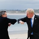 (Photo: Britain"s Prime Minister Boris Johnson greets Italy"s Prime Minister Mario Draghi, during the G7 summit in Carbis Bay, Cornwall, Britain, June 11, 2021. Credit: Phil Noble/Pool/Reuters)