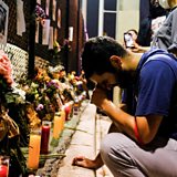 (Photo: Leo Soto, 25, who lost his friend in the disaster, reacts as people hang up signs of missing residents from the partial collapse in Surfside where the rescue personnel continue their search for victims the day after, in Surfside near Miami Beach, Florida, U.S., June 25, 2021. Credit: Maria Alejandra Cardona /Reuters)