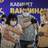 (Photo: Russian people leave a vaccination point after receiving an injection of Russia"s Sputnik V (Gam-COVID-Vac) vaccine against COVID-19 at the vaccination point at the shopping center Solaris in Moscow, Russia, 25 June 2021. Credit YURI KOCHETKOV/EPA)